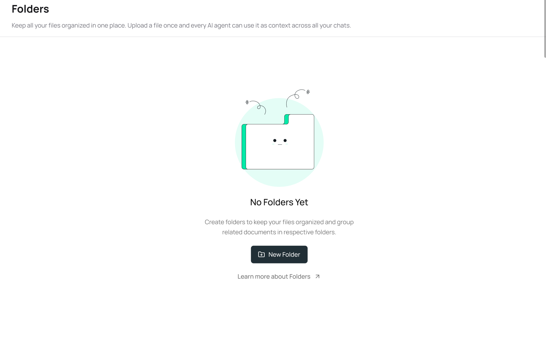 With Folders, you can upload and manage all your files in one place, keep everything neatly organized, and easily use those files as context across your chats and agents for better, more accurate results.