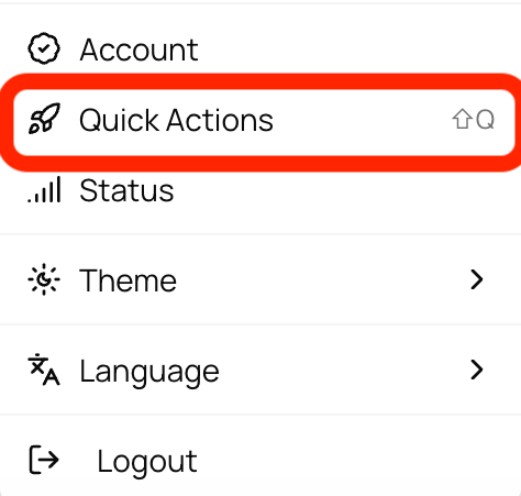 You can open Quick Actions from Settings (bottom-left) or by simply pressing Shift + Q.