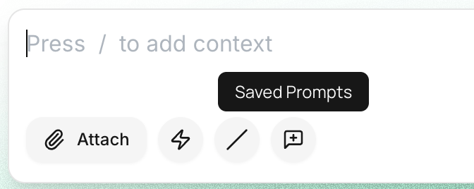 • Access prompts via the Saved Prompts icon or the slash command