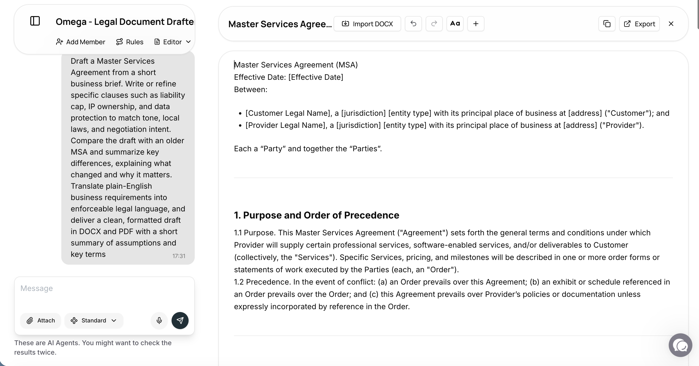 1. Open the Editor instantly – No need to ask an agent! Just head to the new “Editor” tab, click “Create new document,” and start building from scratch.